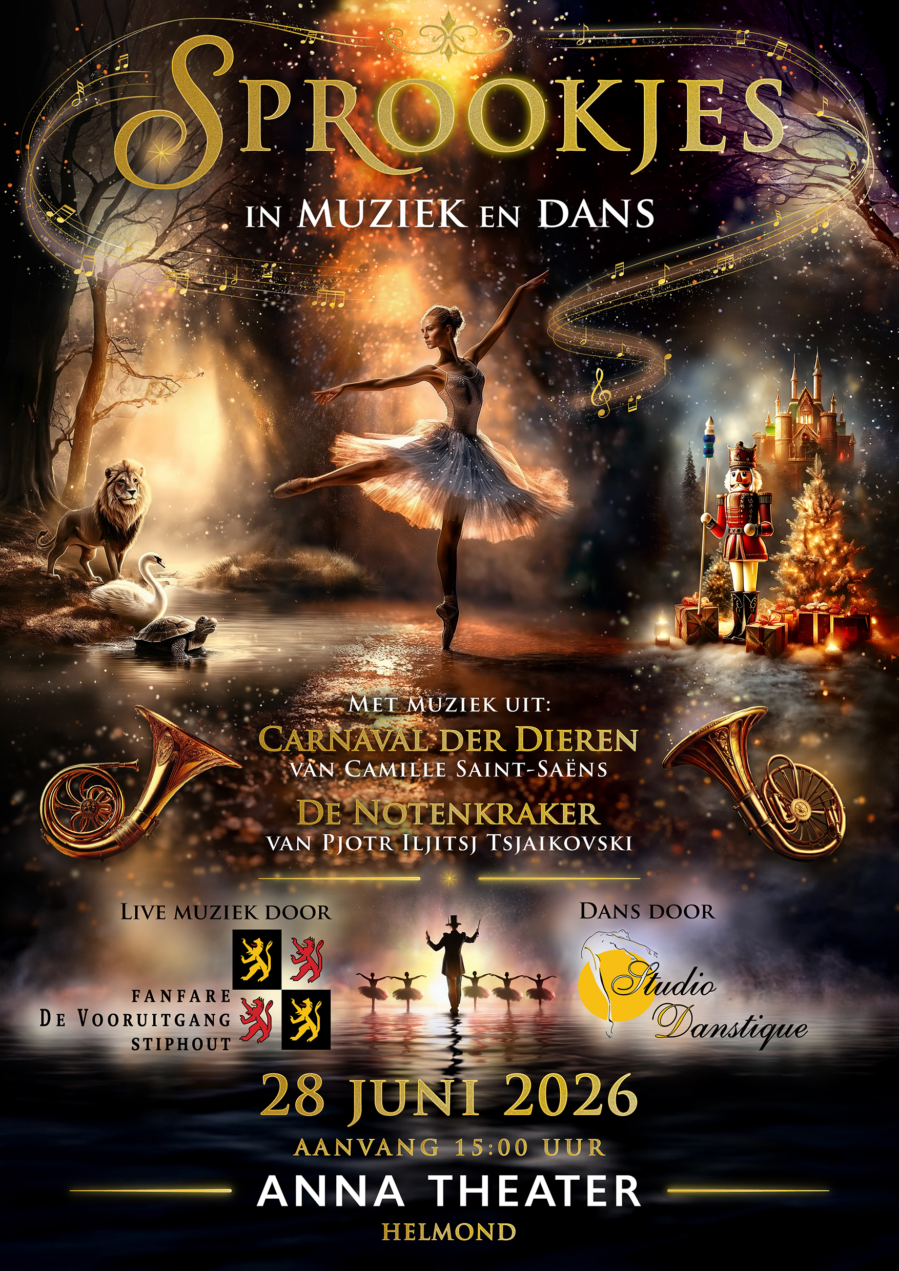 Op 28 juni 2026 zullen wij een seizoensafsluiting “Sprookjes in Muziek en Dans” houden in het Anna Theater in Helmond.